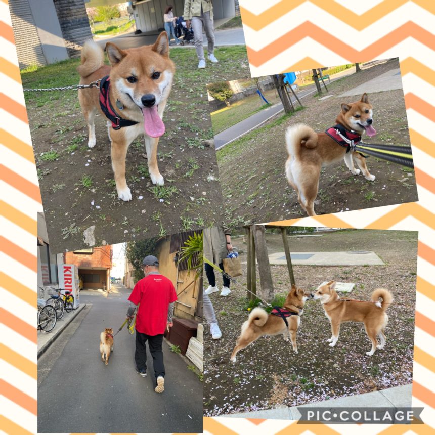 汗ばむ陽気の暖かい一日でした。散歩中は、たくさんのワンズに遭遇。