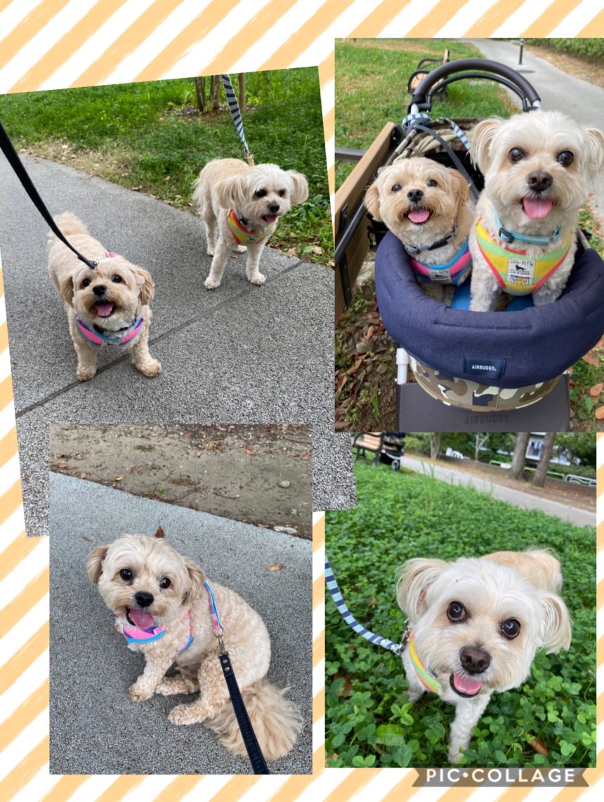 今日のタロウと銀次。雨降る前に散歩に行けました。