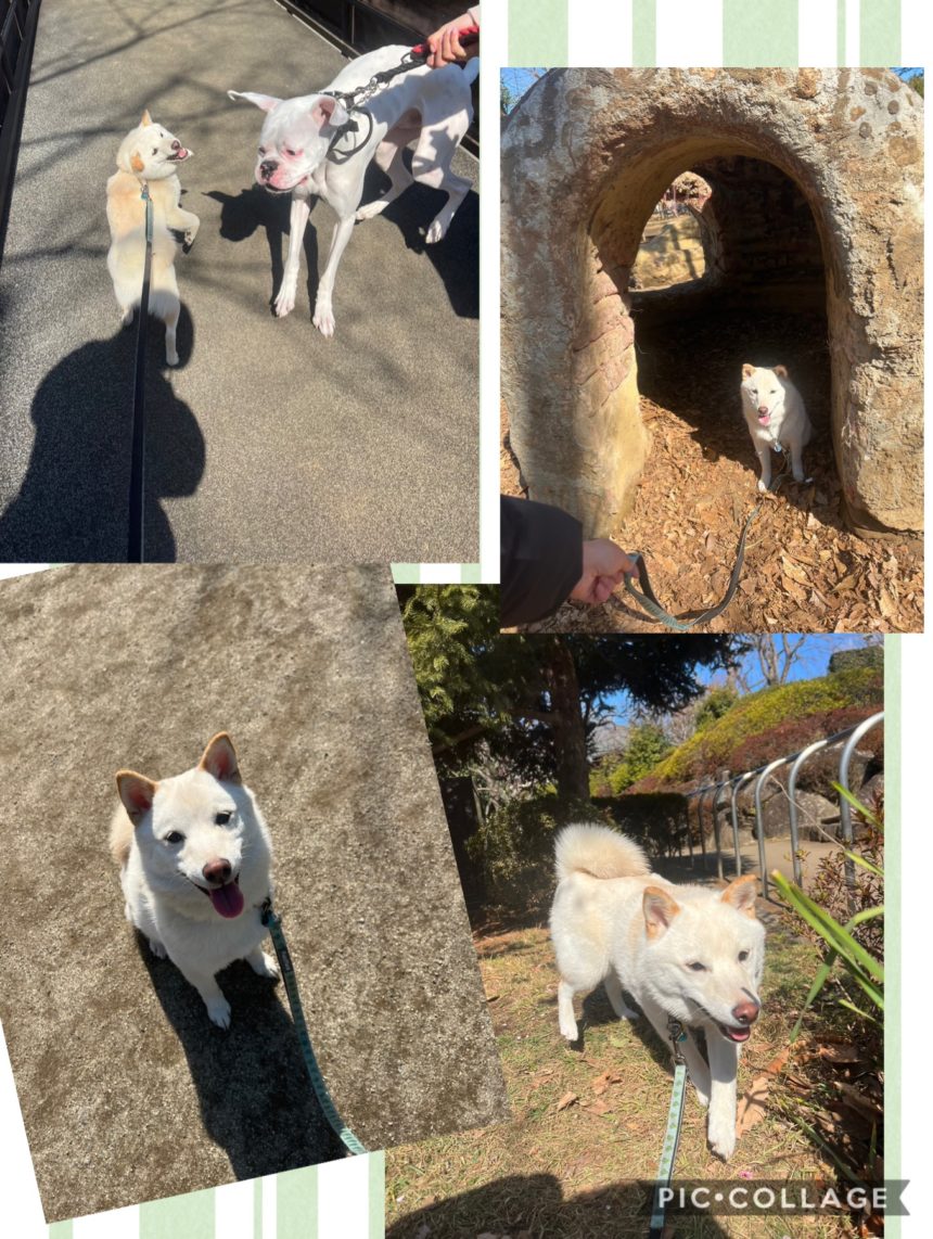 たっぷりお散歩を満喫です。たくさんのお友達ワンズに会えて、まめた大喜び。