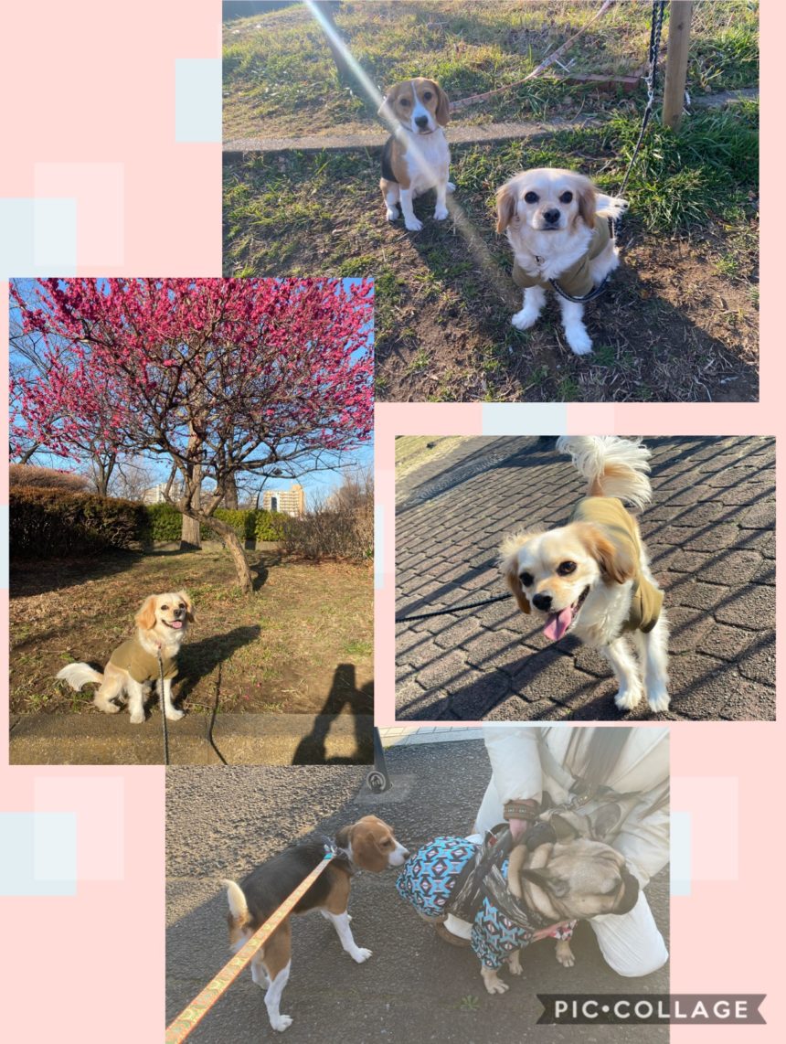 こむぎとクッキー。今朝は一緒に散歩に行きました。