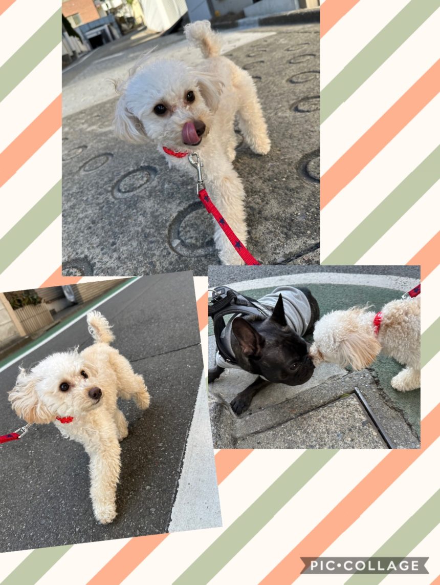 人が大好きなるいは、大喜び。アイコンタクトしながら歩きます。