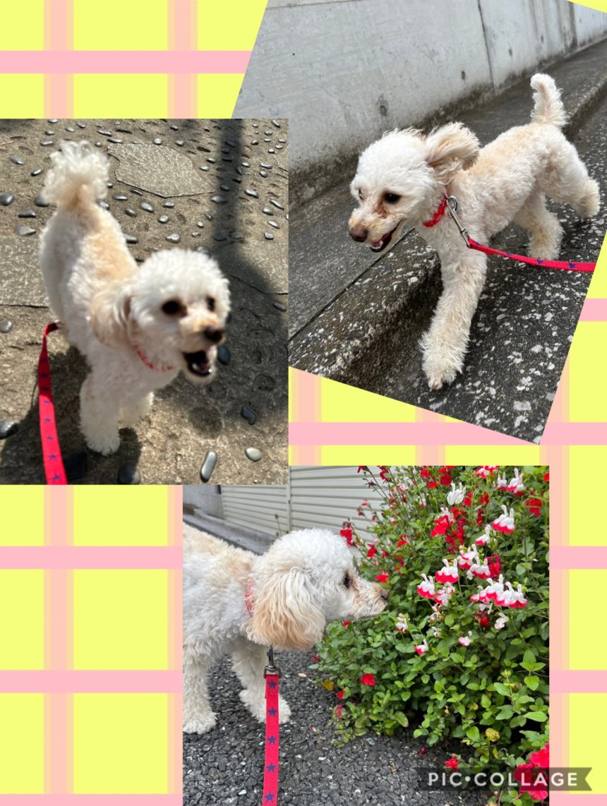 ポカポカ陽気。お散歩日和の朝、るいと張り切って散歩に出ました。 今朝は、近隣の道をたくさん歩きました。 お散歩大好きなるい。ずっとニコニコスマイルです。