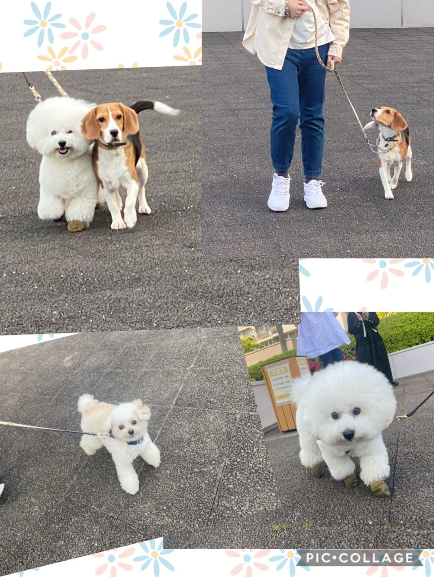 トレーニング犬のティーカッププードル&ビションフリーゼ。途中からクッキーも参加しました。