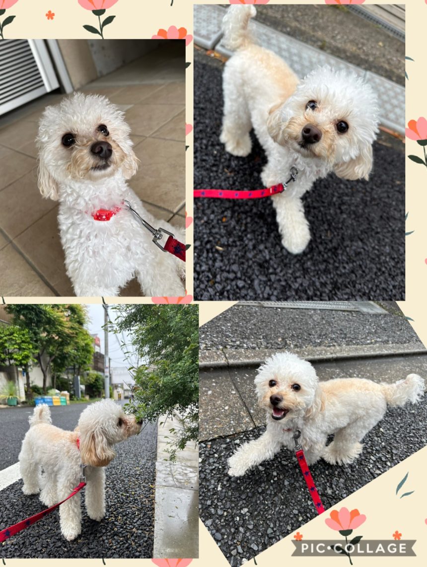 雨上がりのお散歩で、るいとたくさん歩いて、外の刺激をたっぷりと感じました。