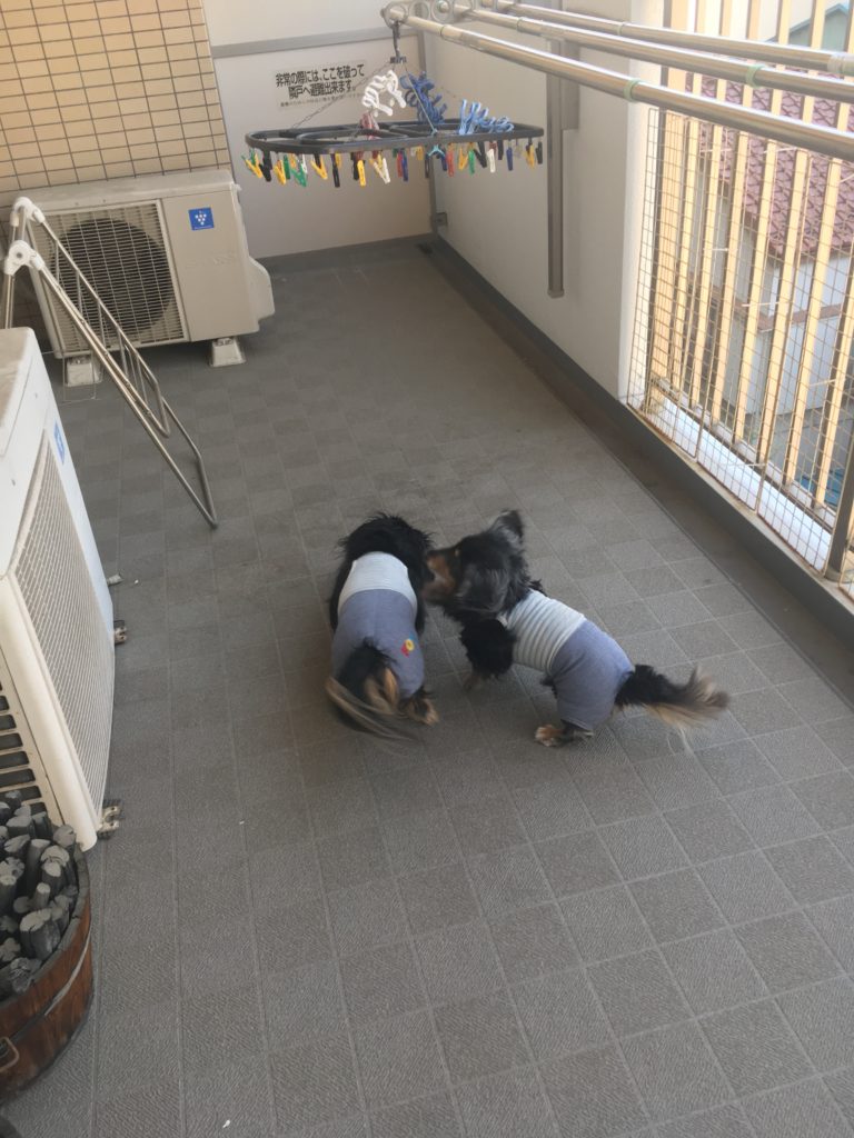 今朝もパワフルにボール遊び。