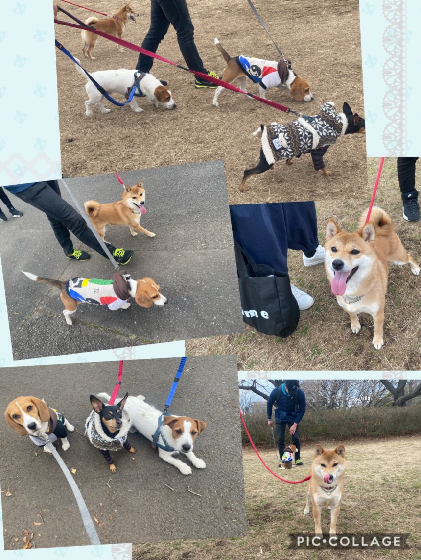 まー。ジャックラッセル&ミニピン君&クッキーは自由気ままだこと。。そんな中に居て、こはくも一緒に歩くけてました。