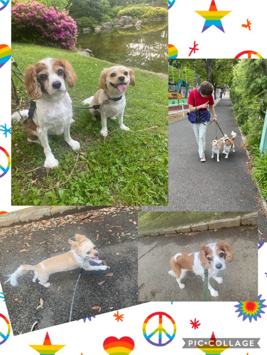 少し早い時間の散歩。公園は貸しきり状態で、ゆったりとお散歩を楽しみました。