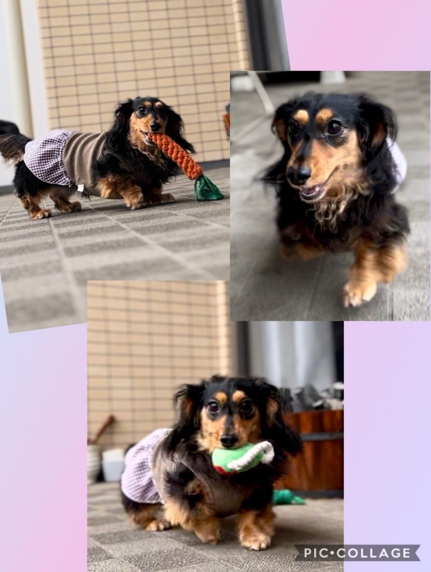 色々なおもちゃを咥えて、引っ張りっこして遊びんで、ルーシー喜んでくれました。
