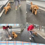 脚側歩行の確認です。すっかりお上手なりました。