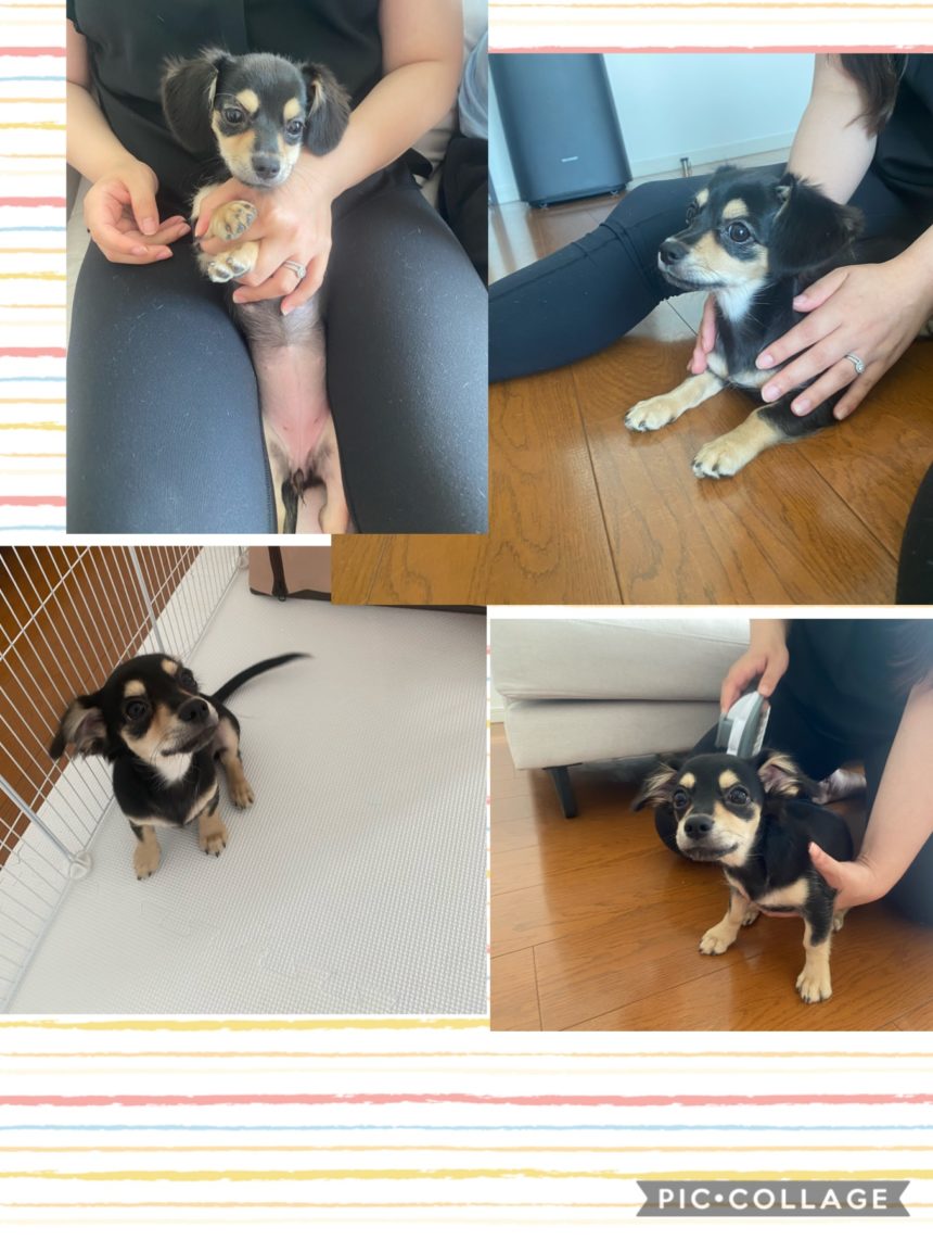 お散歩デビュー前のちょこみ、今日も室内レッスンです。