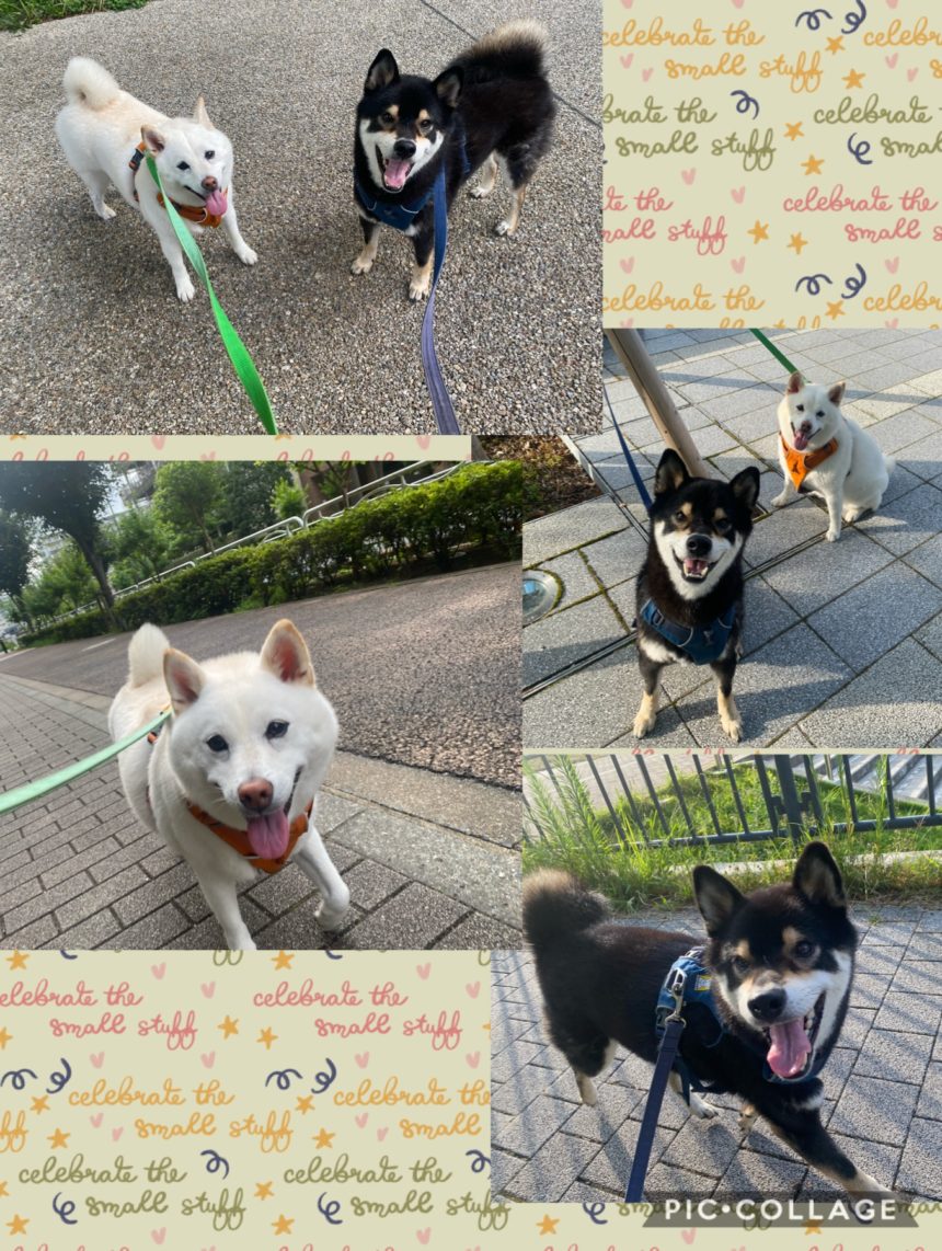 たくさんのワンズに遭遇する時間でしたが、遊はアイコンタクトが上手で常に顔が上がり、元気な笑顔を見せてくれました。琥珀は穏やかで優しいです。マイペースに歩いていました。