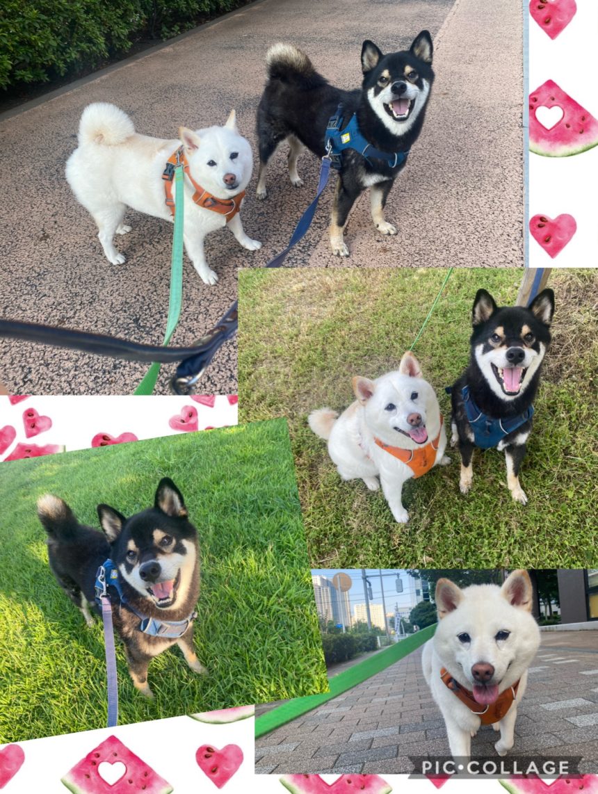 遊が先導切ってアイコンタクトして会話しながら歩きます。後ろからマイペースな琥珀がゆっくり歩きます。