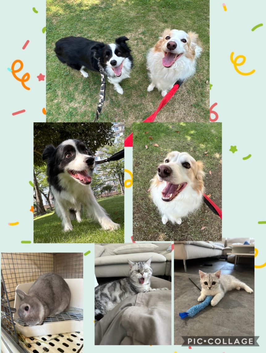 帰宅後も、猫さんがお待ちかね。うさぎさんにも草あげてご挨拶です。