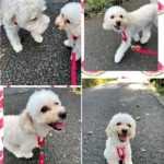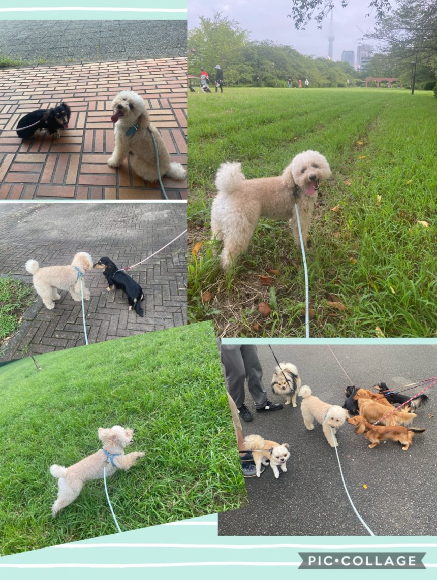 途中、たくさんのワンズに囲まれて、上手にご挨拶出来ます。飼い主様一人一人にも、ちゃんとご挨拶出来ました。社交的なラテです。