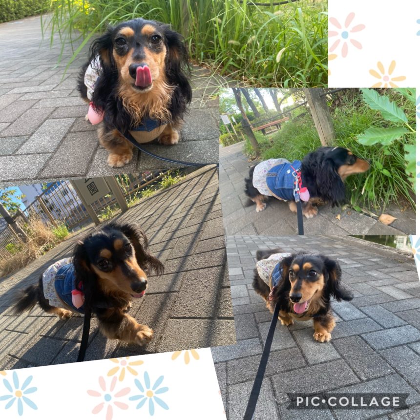 朝6時台は、まだ日陰の道が多く、風に吹かれて快適にルーシーと歩きました。