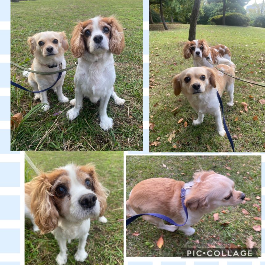 今朝は、雨上がりのお散歩、部屋に伺うと、こむぎは待ち構えていて、モカは爆睡中。
