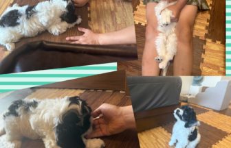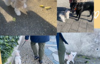 夕方の運河コース。運河の波打ち際のザブンが怖くて、前回立ち止まり遊が動かなくなり、今日からコース変更。陸上を歩いて散歩しました。