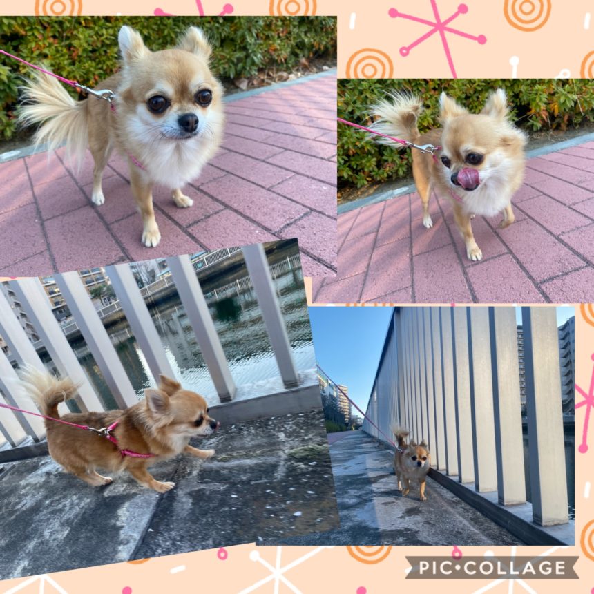 川沿いをのんびり散歩。帰りが早足ですよ。