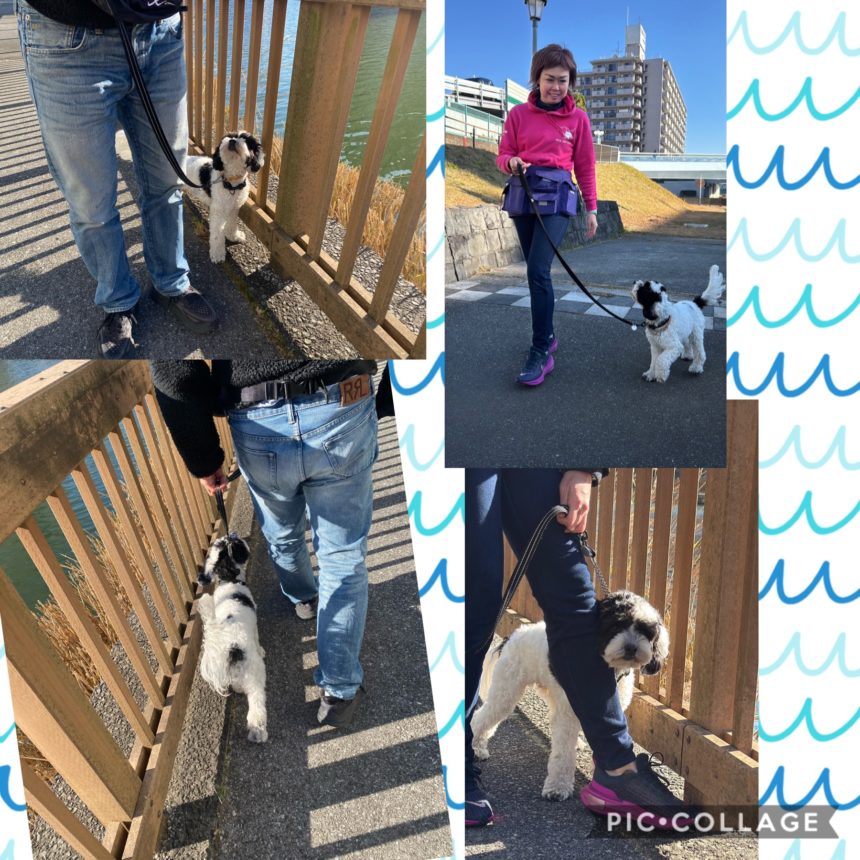 リーダーウォークから脚側歩行へ。歩行の速度調整、止まれコマンドの習得です。