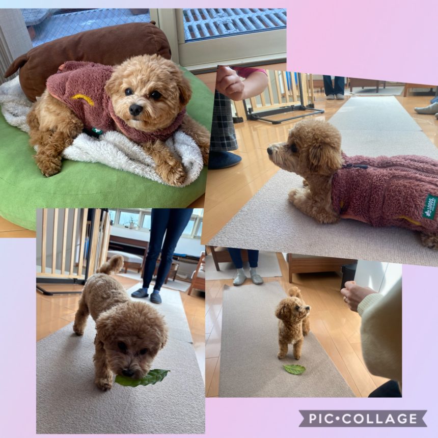 ファンタの好きな葉っぱを使い、出せの練習を強化しました。室内では、出来るようになりました。