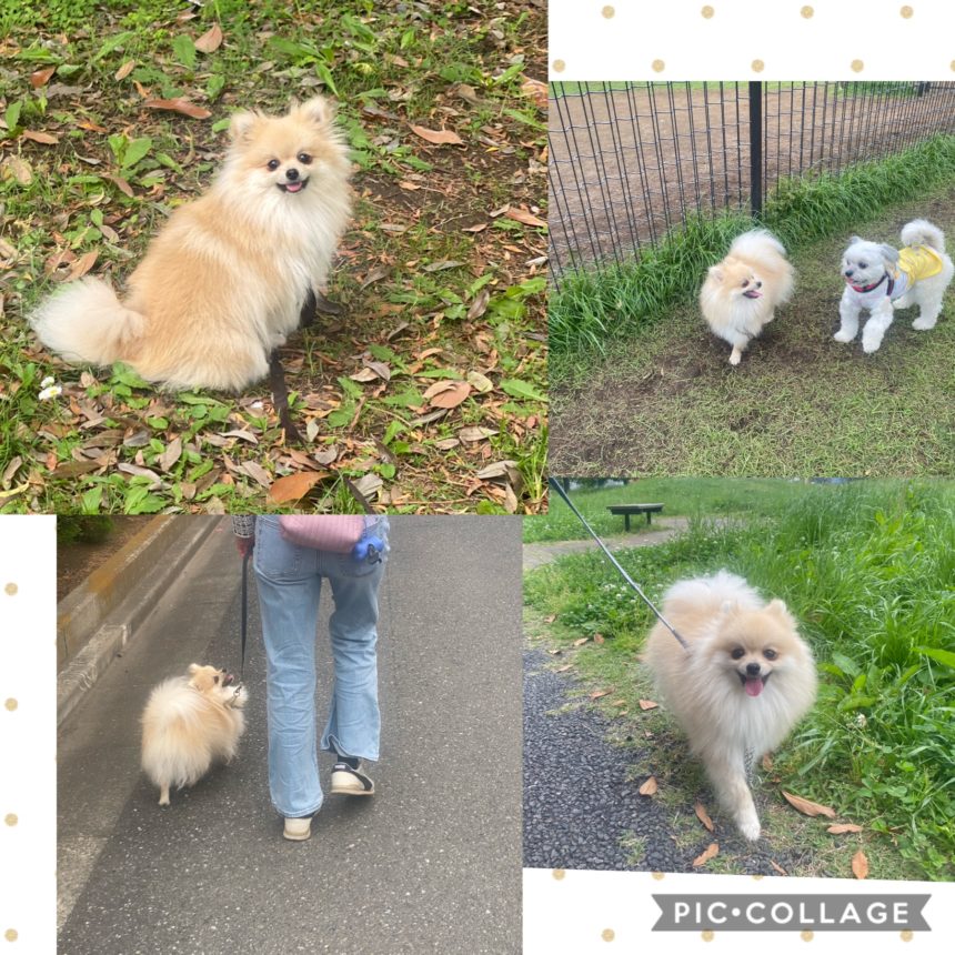 外トレーニングは合格印。まめ、本当にお利口さんになりました。