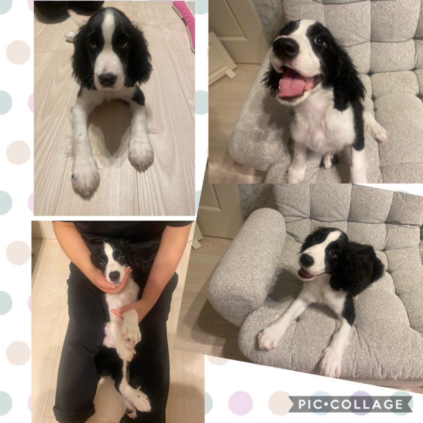 りんのパピー基礎トレーニング、本日2回目で室内です。