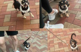 今朝は、お散歩トレーニング(確認)と、呼び戻し練習を外で行いました。