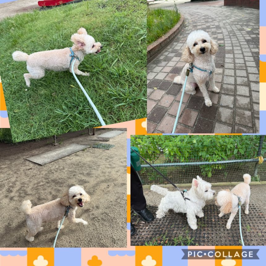 ラテと張り切ってお散歩へ。ラテはお散歩が大好きで楽しみに待っています。