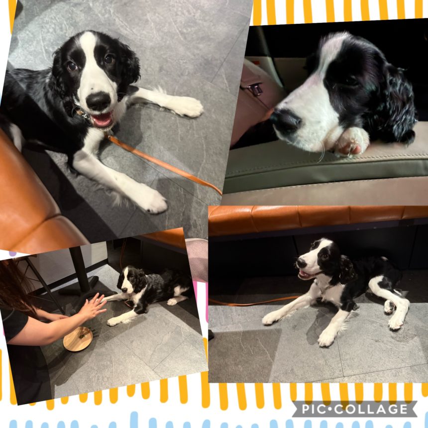 今日は、トレーニングの一環でドッグカフェに行きました。