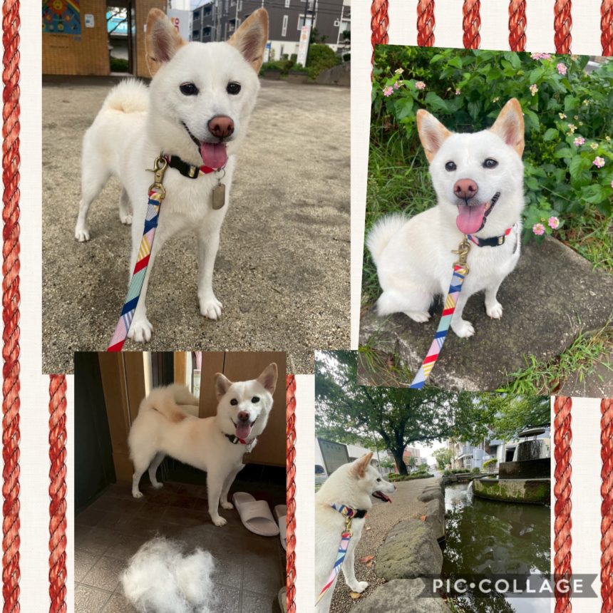 今朝は、雨上がりのお散歩タイム。大分涼しくなり、散歩が気持ち良いです。