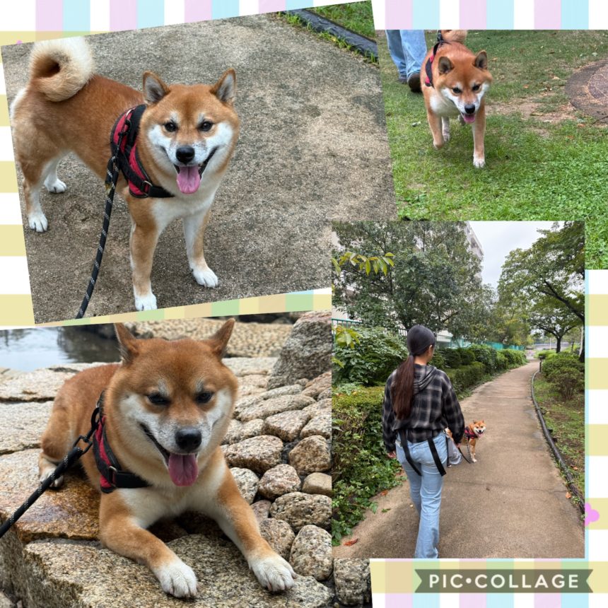 リキ丸のパワフル散歩、行きはグイグイ前進。帰り道は落ちついて歩けました。