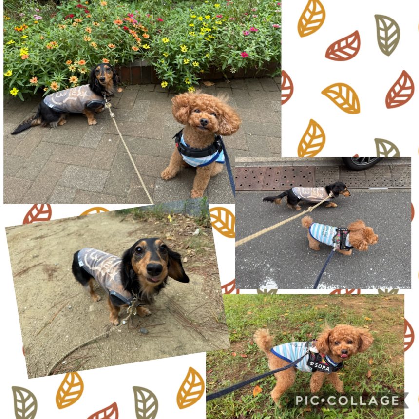 今朝の朝ん歩。仲良く並んで上手に歩いていました。