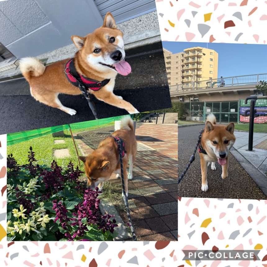 早速お散歩へ。リキ丸排泄我慢していてグイグイ前進です。