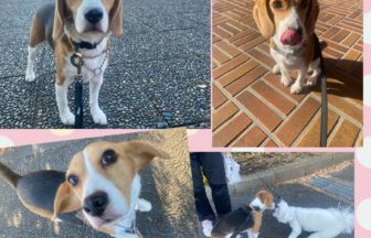 最初緊張していましたが、後半は尻尾フリフリ、ニコニコスマイルで歩いてくれました。