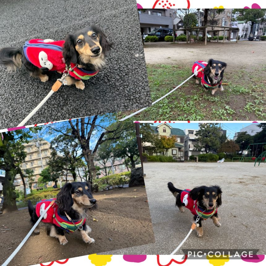 3つの公園をホッピングします。芝生の上を楽しそうに駆け回ってました。