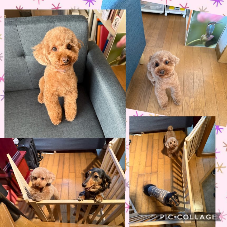 夜は小春が来て、モナカ吠えるので社会化練習です。