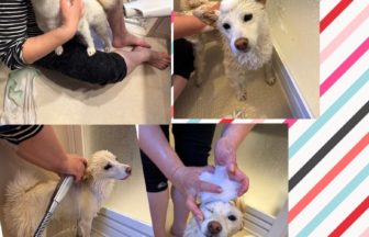 最初わっしゃわっしゃ。飼い主さんに見向きもせずリード絡まり飛びかかりのココ。