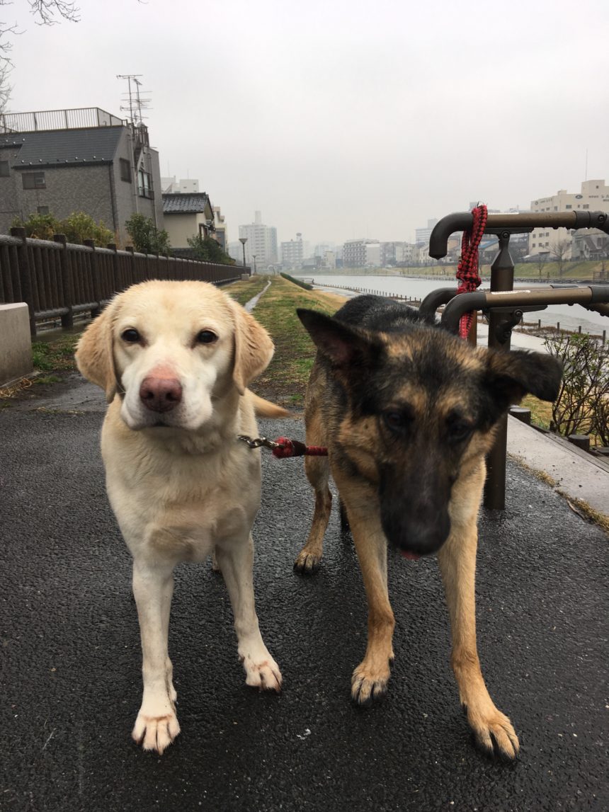 排泄目的の散歩でしたが、みんなびしょ濡れになりました。