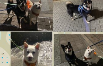 早朝のお散歩時間。レモンとエドナ。 小雨ばらついて寒い朝でした。