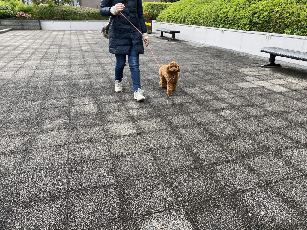 リードの基本的な持ち方。アイコンタクトを強めた歩行。スムーズに進みます。