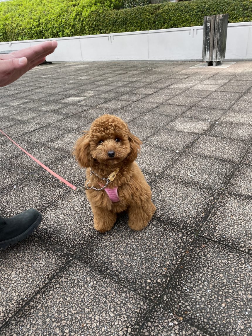 行きに比べて、トレーニング後の帰り道は、別犬のように左に付いて良い子に歩けました。