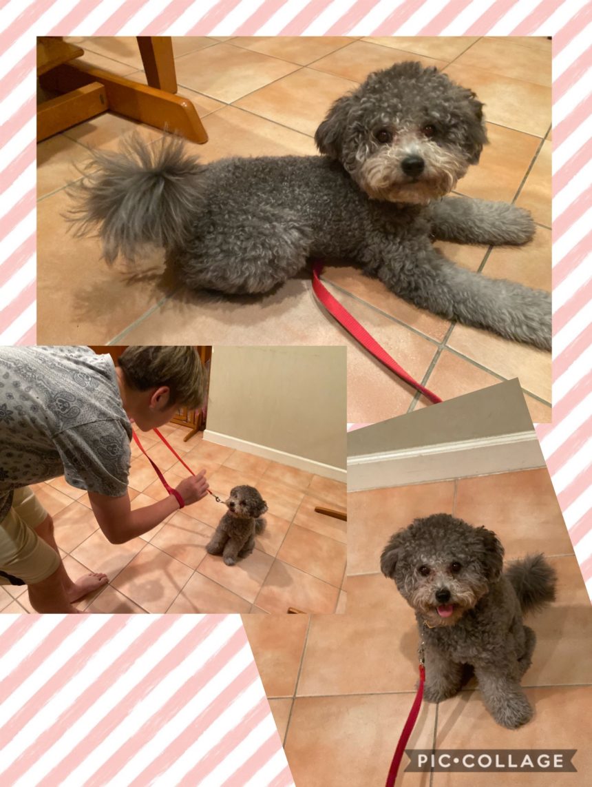今日の課題は、伏せ→待て。脚側停座の刷り込みまで進みました。