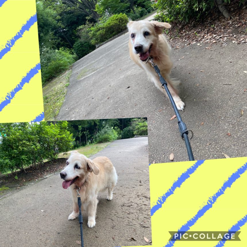 昨日から、いつもの公園での散歩を再開しましたが、この暑さでバテ気味です。歩く時間も長いので、目の見えない私は不安になり立ち止まると、ママが頭をポンポンと軽く叩いてお知らせ。安心して歩きます。